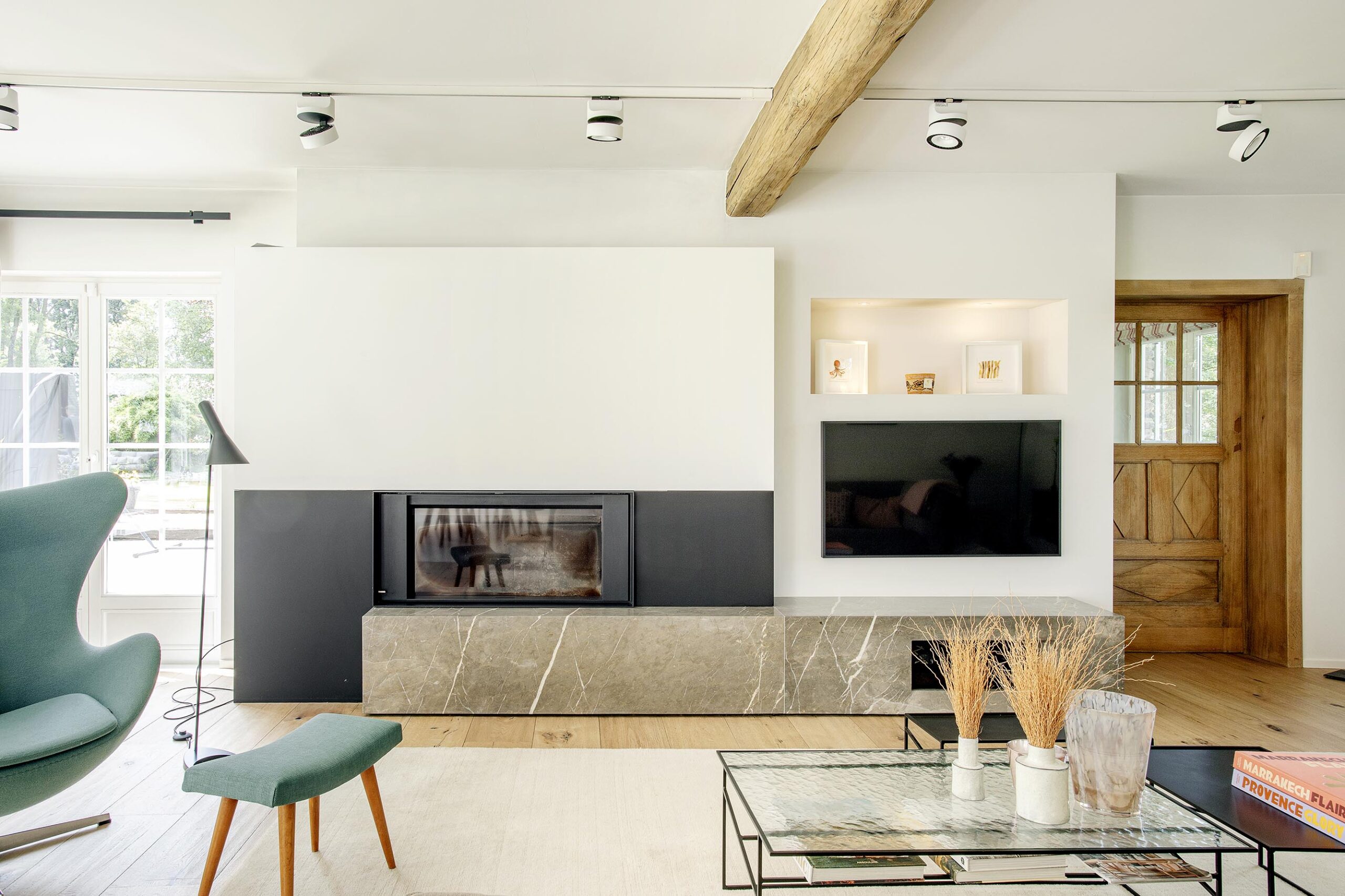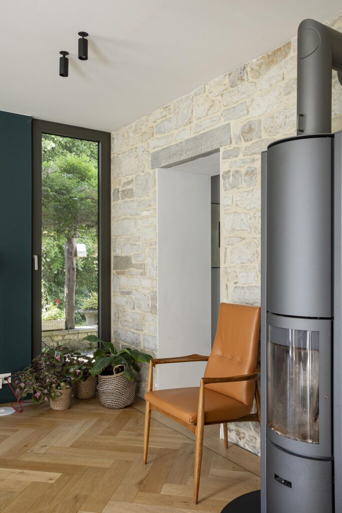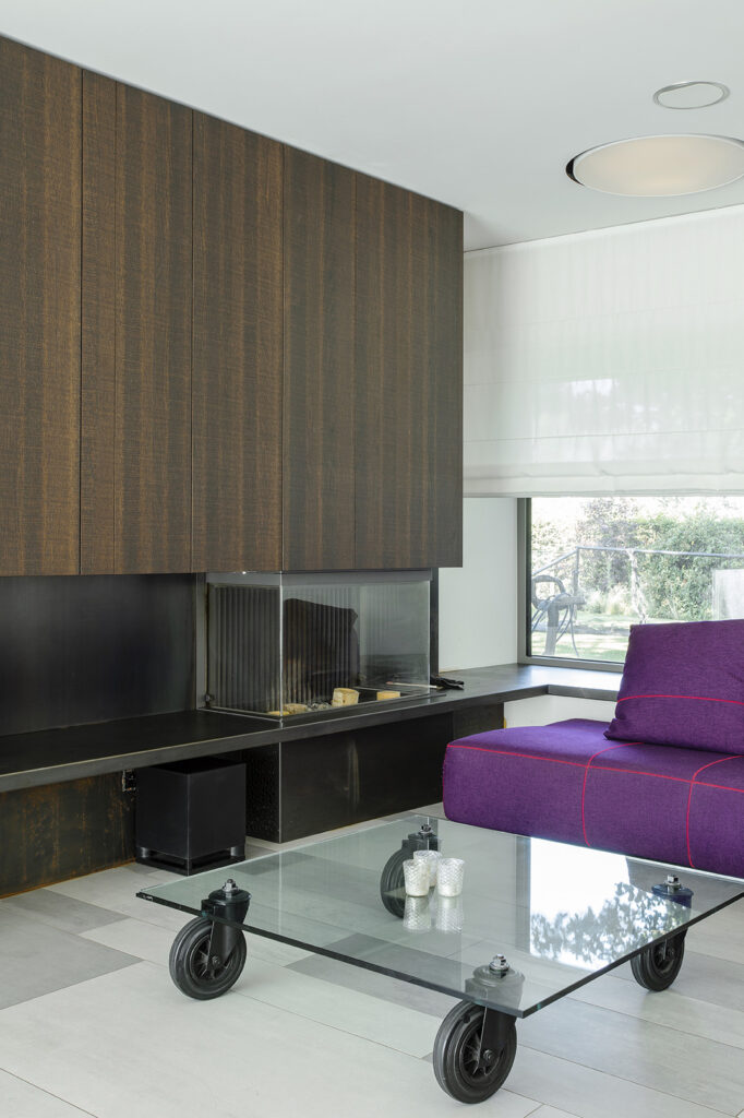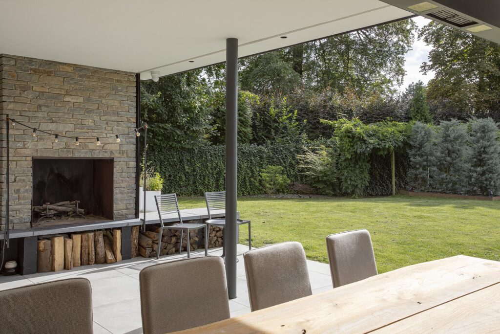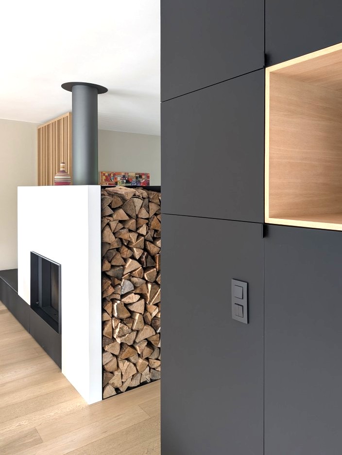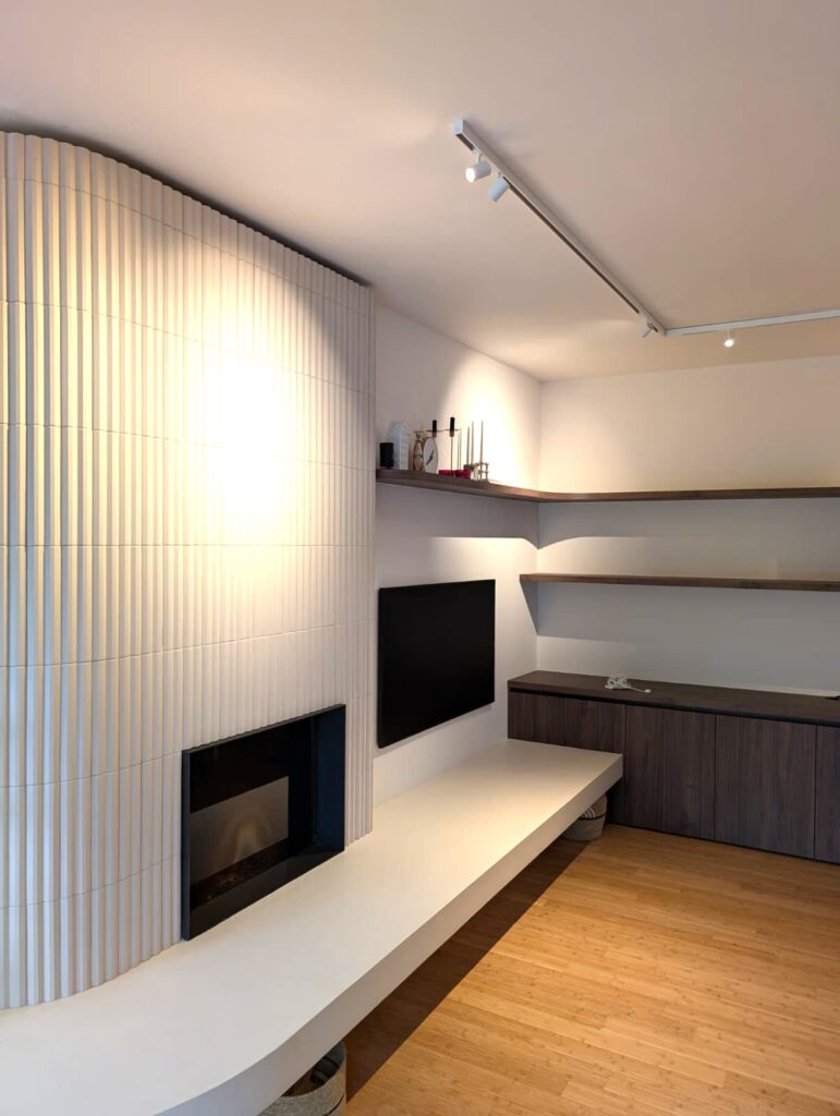 Qu’il soit visible sur une, deux ou trois faces, en lien avec une terrasse couverte ou intégré à un mobilier sur mesure, il structure les volumes, façonne la lumière et crée une atmosphère à la fois intime et vivante.